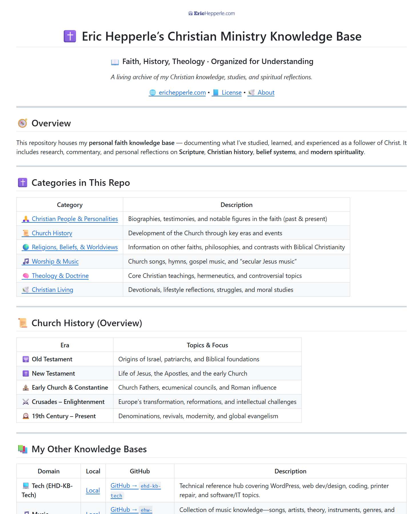 Eric Hepperle Designs – Bible History, Christian Living, and Ministry Knowledge Base View Repo →